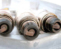 Решил посмотреть свечи. Свеча первого цилиндра залита маслом, остальные нормальные. Может это следствие удвоенного количества масла при обкатке? Сделал эксперимент. Возвращаясь из поездки на чистом бензине, заглушил двигатель на рабочих оборотах и на причал заходил на веслах. Снова выкрутил свечи — другой расклад (фото «свечи»).