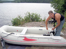 В связи с отсутствием прав для управления моторной лодкой, да и ограниченного использования её в местных озёрах, мною был задействован электромотор Minn Kota. Также на данной надувной лодке как-то был использован подвесной мотор Mercury 5л.с., 2-х тактный.