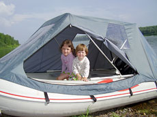 Был у меня случай, когда однажды проколол нос лодки о притопленный сучек дерева. Переместив весь груз ближе к транцу и, на слабом ходу (примерно 5-7км/ч), с приподнятым носом я проплыл 5 км до лагеря. Все это получилось за счет надувного киля и жесткого пола. При этом ни капли воды в лодку не попало. После этого случая, я и моя надувная лодка стали как брат и сестра.