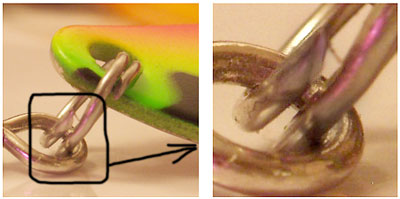 На первый взгляд блесенка изготовлена очень качественно, но будем говорить открыто. Только присмотревшись, я выявил некоторые недостатки, которые советую исправить сразу, не испытывая судьбу…