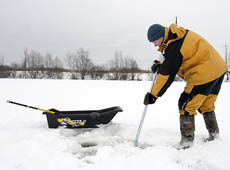 И вот на одной из последних рыбалок я оценил нижнюю границу комфорта. Это уже была рыбалка со льда. Все тот же носок. Температура в районе -5 градусов. Через час-два рыбалки нога стала подмерзать. Не критично конечно, но уже не так комфортно. Но, должен отметить, что небольшое перемещение довольно быстро нагревает сапог изнутри, и снова - нормально.