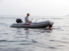 Надо отметить, что в шторм моя лодка тоже не особо хорошо себя ведет. Сильно ее «колбасит». Полагаю, что эта проблема ВСЕХ «надувнух»! Но, если ее хорошенько загрузить, особенно нос – жизнь становится гораздо приятнее!