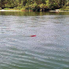 С креплением планера к шнуру я разобрался сразу, делаю отпуск воблера Shore Impress Shore Bulet 90F с заглубителем метров 20, креплю планер (см. фото), отпускаю ещё метров 10 шнура и наблюдаю картину, представленную на фото.