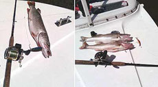 Результат трёх проходов – пара килограммовых судачков (см. фото). Теперь попробуем блесну Gibbs Klendon Stewart. Глубина – 6,5 метров. Отпускаю планер, прохожу метров 70 и тут – сильнейший рывок! После непродолжительной борьбы в подсаке забилась трёхкилограммовая щука (см. фото).