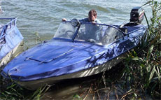 Первое впечатление очень приятное: вибрации от мотора практически нет, на глиссер вышел через секунду. При оборотах 3000 - скорость 40 км/ч, при 4000 - 55 км/ч. Все. Дальше скорость не растет. В принципе, больше и не надо. Мне хватит. Ощущения приятные.