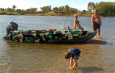 - С полной нагрузкой (около 550 кг) - 57 км/ч, на глиссер выносит тяжеловато, но выносит даже против течения р. Ока.