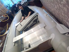 Привез домой, с сыном подняли на третий этаж. И решили накачать, проверить товар! Накачали, собрали, и тут у меня жена была очень удивлена, и, кстати, я тоже. Нет, вы не подумайте, к качеству претензий не было. Наоборот - всё аккуратненько, чистенько, в общем, претензий нет. А удивлены мы были размерами лодки, она была чуть не со всю комнату…