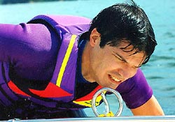 Я попробовал самостоятельно встать на водные лыжи в 1967 году. Пытаясь произвести впечатление на зрительниц, я, стоя на одной лыже, не удержался на повороте в общем-то тесном Дубайском заливе и со всего маху влепился на своих водных лыжах в бетонный буй!