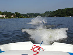 Установите винт с шагом на 2 дюйма (5,08 см) меньше, чем по штату полагается лодочному мотору, и получите то, что дали бы ещё 20 дополнительных «лошадей». В конце дня хороший катальщик на водных лыжах обычно постарается просто поездить за ровно и не слишком быстро движущимся буксиром. Соответственно, RIB-лодка должна быть способна буксировать лыжника на разных скоростях, ускоряясь и останавливаясь, причём периодически винт будет выходить из воды.