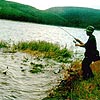 Уже не задолго до встречи с вездеходом приметили одновременно с Георгичем ямку одну. С виду - неказистая, струйка добрая в нее бьет, простору — 2 на 3 метра. Подошли. По забросу сделали — пусто. Еще один, контрольный, пробую. Спиннинг с фрикционом одновременно сработали. Палка в колесо согнулась, фрикцион повизгивает. Ну, думаю, таких я здесь еще не лавливал. Георгич рядом стоит, поймал-нет, спрашивает.