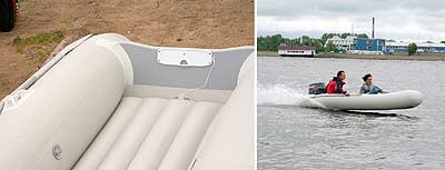Главным отличием данных моделей является не только надувной пол из продольных несущих элементов, а собственно сам «надувной» транец. Вы видели такое еще где-нибудь? Вот!..