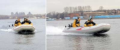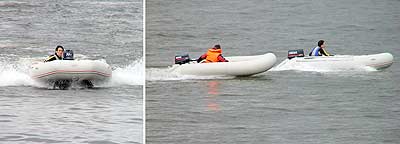 В нашем случае на воде был Heavy Duty 390 (30 л.с.) и Wave Line 350 (15 л.с.), а маленький и верткий Wave Line не так, чтобы быстро, но обходил наш «внедорожник». Безусловно, разные габариты, масса и пр., но возникла мысль – а не попробовать ли уровнять шансы?