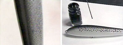 Если Вы хотите нанести на тело приманки более крупные пятна или полосы, причем так, чтобы их граница была нерезкой, то лучше всего будет вновь воспользоваться аэрографом, нанося краску через прорезной трафарет, который просто удерживается свободной рукой перед приманкой.
