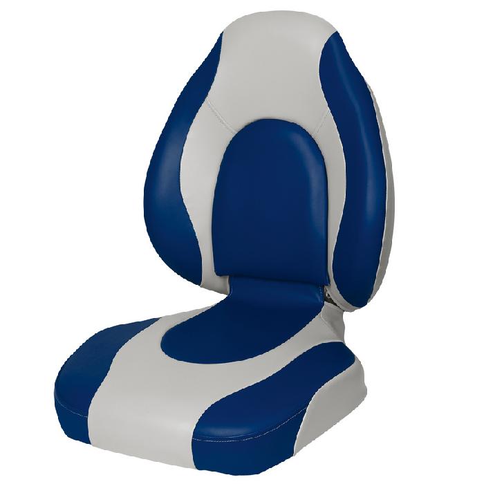 Комфортное сиденье с высокой спинкой для лодки, оборудованное мягкими виниловыми вставками в области спинки и сиденья. Складывающаяся рама сиденья изготовлена из пластика. Все материалы приспособлены для использования в морской воде. Крепление этой модели производится с помощью 4-х саморезов к ровной поверхности.