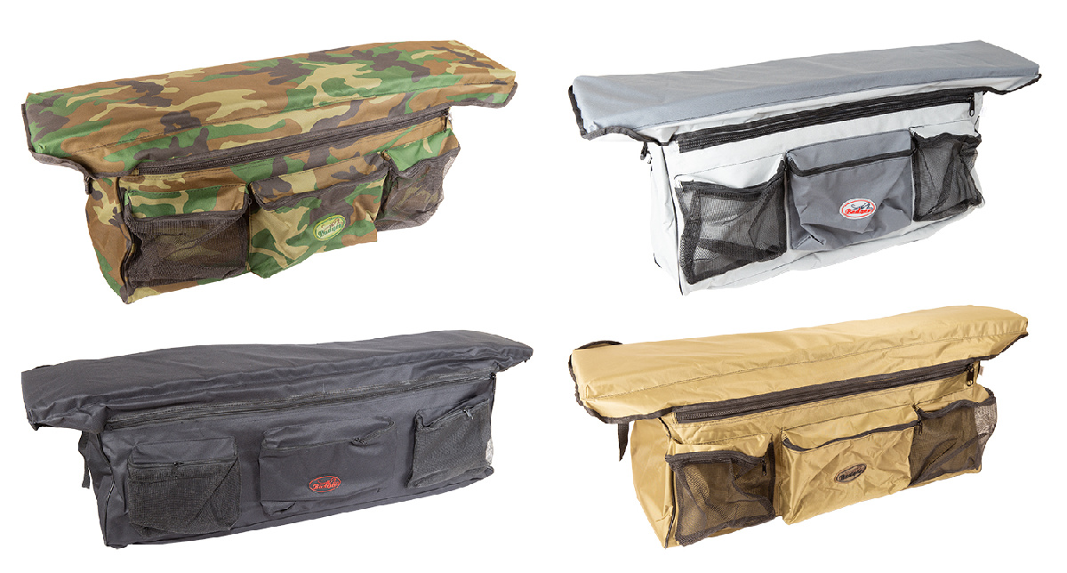 Сумка под сиденье, предназначенная для установки на сиденье надувных лодок длиной 300-340 см, имеет мягкий верх с пенкой внутри и дополнительно снабжена тремя наружными карманами, два из которых оснащены сетчатой стенкой, что позволяет всегда видеть их содержимое.