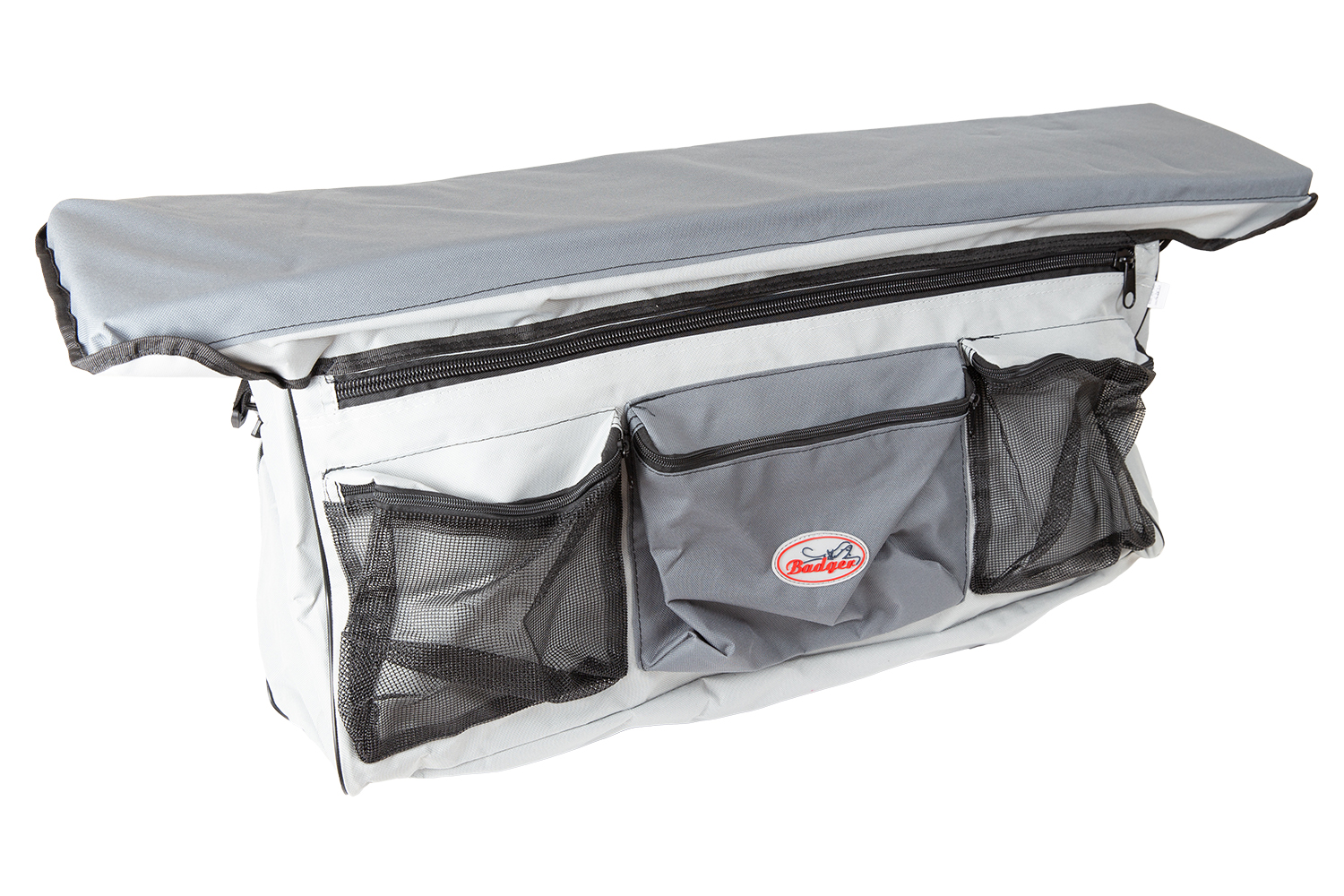 Эта объемная лодочная сумка предназначена для установки на съемное сиденье пвх лодки длиной 420-430 см. Она имеет дополнительно три небольших кармана, два из которых снабжены прозрачной стенкой из синтетической сетки.