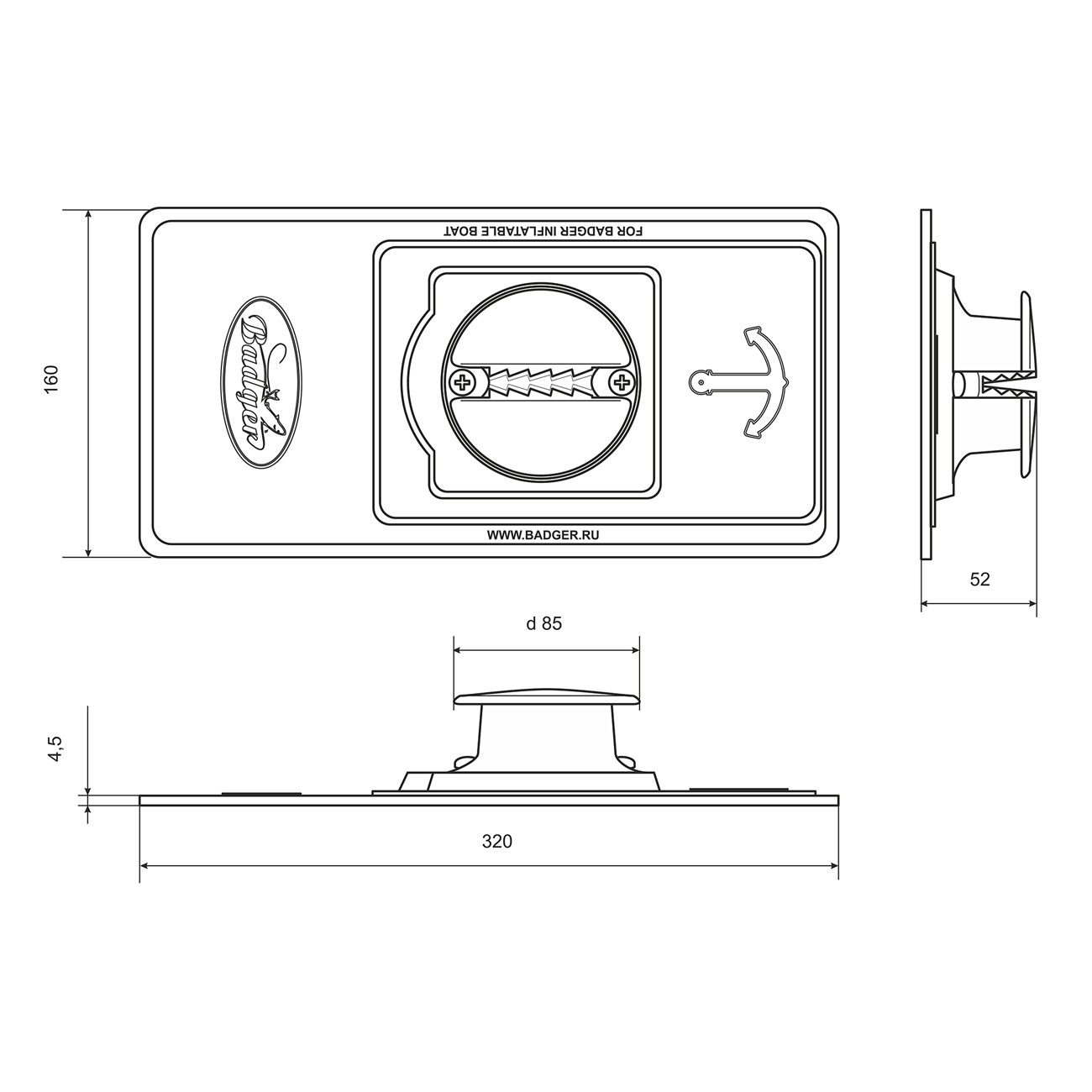 Рым предназначен для установки на борт надувной лодки, изготовленной из ПВХ материала. Такой якорный рым снабжён замком из твёрдого пластика с V-образным профилем, который позволяет быстро зафиксировать верёвку в необходимом положении. Чтобы сняться с якоря достаточно подтянуть верёвку на себя, и она немедленно «высвободится» из замка рыма.