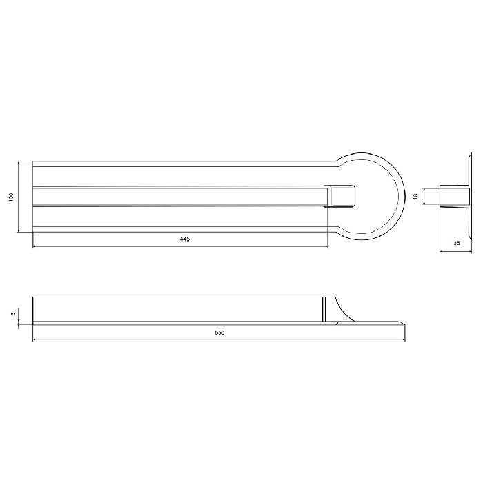 Представляет собой U-образный литой профиль, изготовленный из PVC. Использование данного конструктивного решения дает возможность надежно закрепить транец между баллонами надувной лодки под нужным углом и позволяет устанавливать на такое судно двигатели большей мощности. Предназначен для транца толщиной 18 мм.