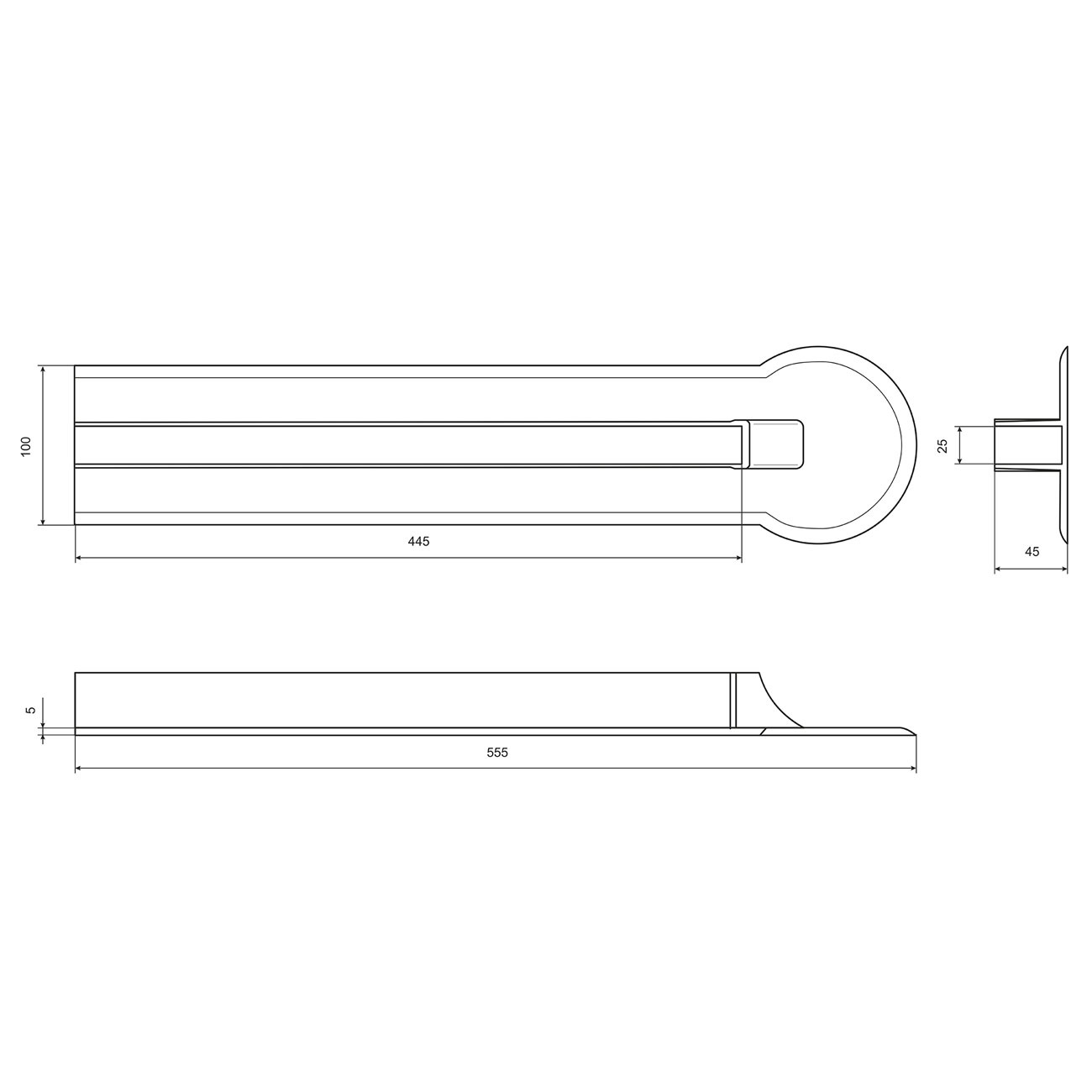 Представляет собой U-образный литой профиль, изготовленный из PVC. Использование данного конструктивного решения дает возможность надежно закрепить транец между баллонами надувной лодки под нужным углом и позволяет устанавливать на такое судно двигатели большей мощности. Предназначен для транца толщиной 25 мм.