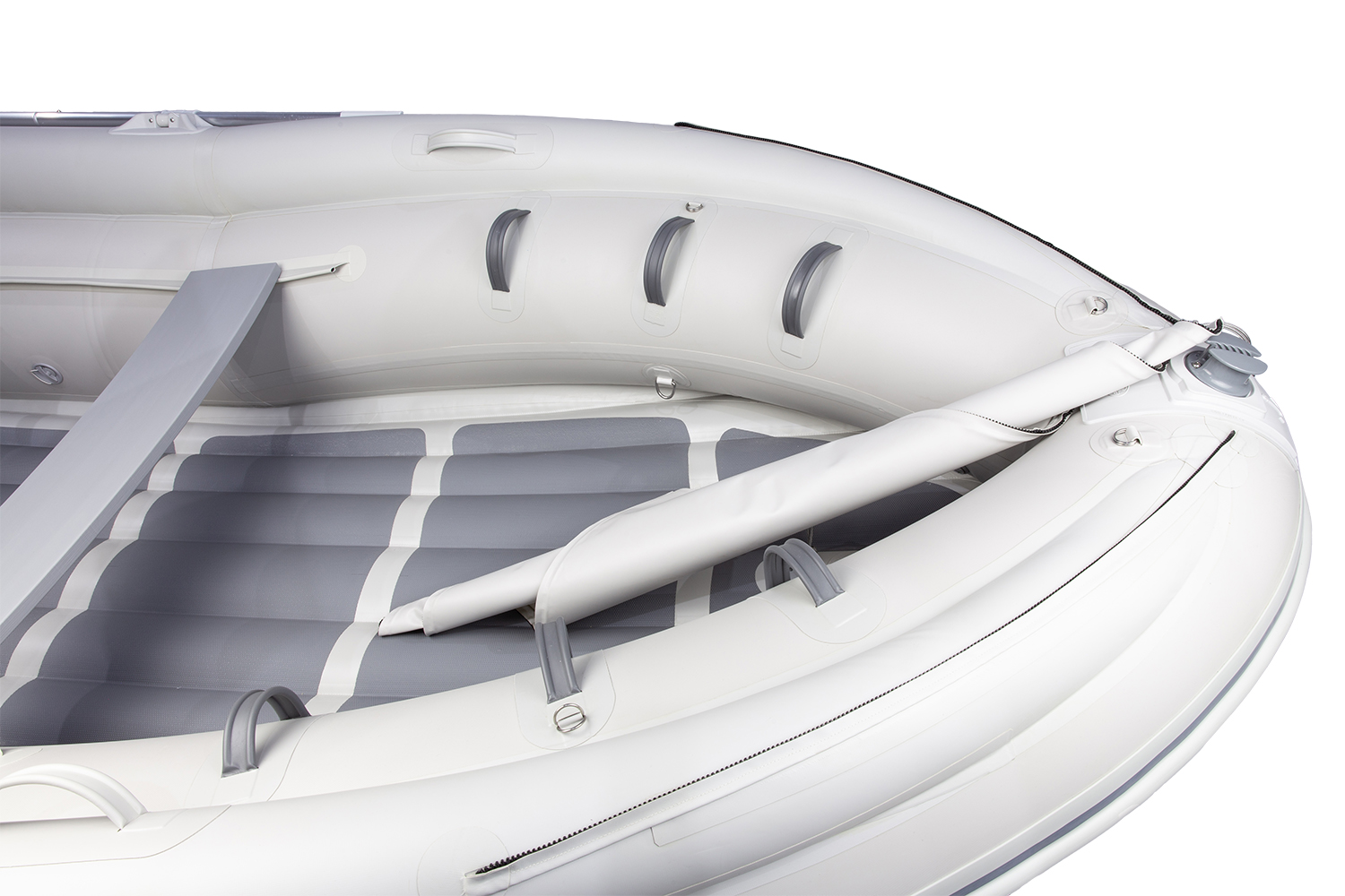 Лодки Badger ЭирЛайн (AirLine) 390S имеет брызгозащищенность кокпита и отличные мореходные качества. Интегрированный фальшборт, оборудованный уключинами, поднимает защиту от воды и комфорт пассажиров на новый уровень. Носовой тент (съемный фартук) в передней части кокпита, защитит пассажиров и снаряжение в лодке от заливания и брызг. Якорный рым, штатно установленный в носу лодки, добавит комфорта в эксплуатации. Лодка готова к длительным переходам, даже с учетом неблагоприятных условий плавания.