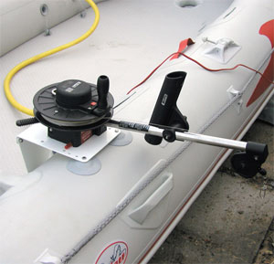 Данная система для установки навесного оборудования позволяет разместить на борту надувной лодки держатели спиннингов, даунриггер, эхолот, коммандер дистанционного управления (ДУ) лодочным мотором и др. снаряжение практически в любом удобном для владельца судна месте. В комплект входит сборный столик из 2-х элементов, три пятака из PVC с резьбой, тюбик клея для монтажа, крепежные болты. Размеры платформы 25 х 20 см, высота "ноги" 25 см.