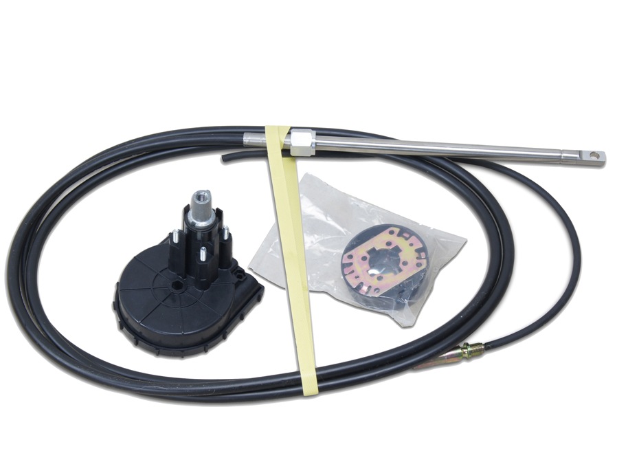 В набор дистанции на лодочный мотор входит рулевой редуктор модели Т67, с возможностью полной перекладки руля за 2 1/2 оборота, рулевой трос c шагом длины 30,5 см и необходимые крепёжные элементы. Длина рулевого троса определяется как длина рубашки плюс 56 см. Минимальный радиус изгиба троса 200 мм. Руль для лодки в комплект поставки не входит и приобретается дополнительно.