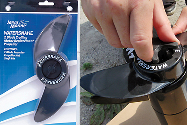 Такой гребной винт может работать в полупогруженном состоянии и позволяет эксплуатировать электрический лодочный мотор на малых глубинах. Предназначен для моторов с тягой 28 и 34 фунта.