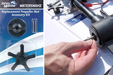 Стопорная шпилька располагается сразу за винтом и служит только для передачи вращения на винт. Барашковая гайка служит для фиксации винта на валу. Данный набор походит для всех моделей лодочных электромоторов WaterSnake, кроме моделей Т18-24. Запчасти для электромоторов Watersnake.