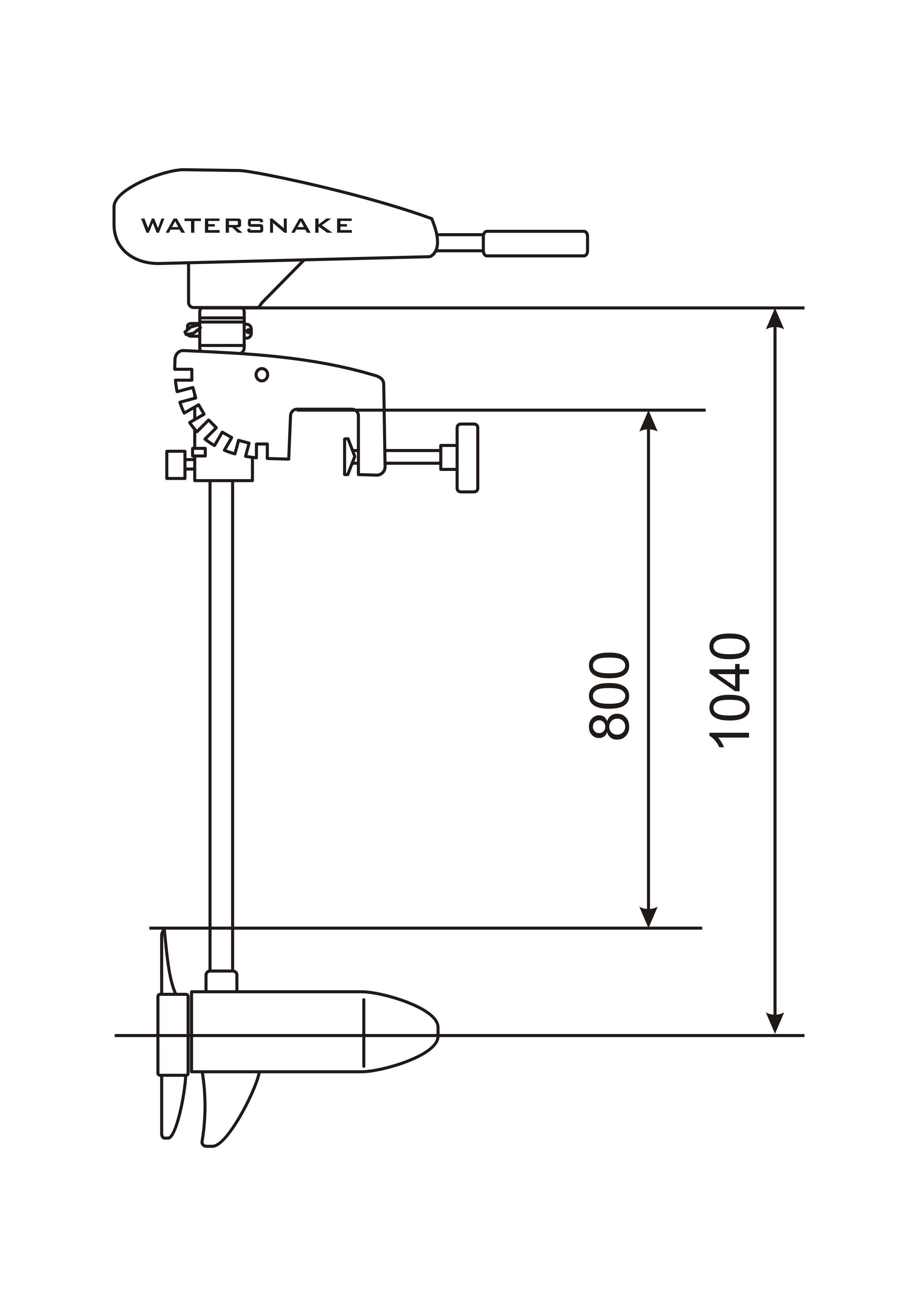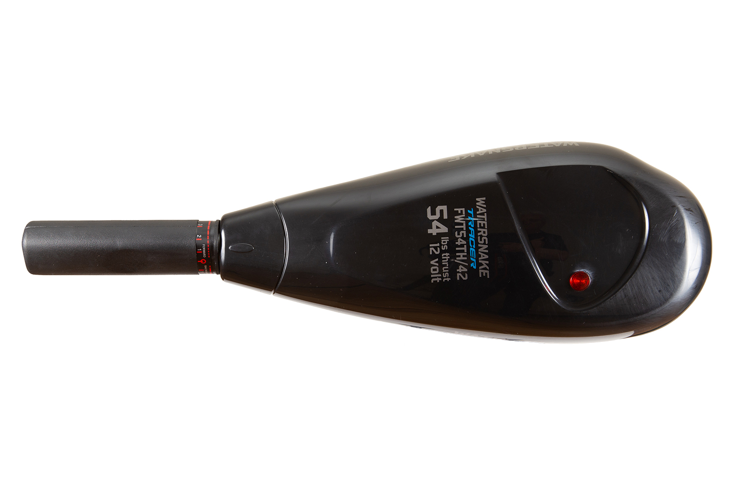 Румпель управления телескопический (13-28 см). Мотор имеет пять скоростей для движения вперёд и две для движения назад. Электрические провода оснащены концевыми клеммами под винт.