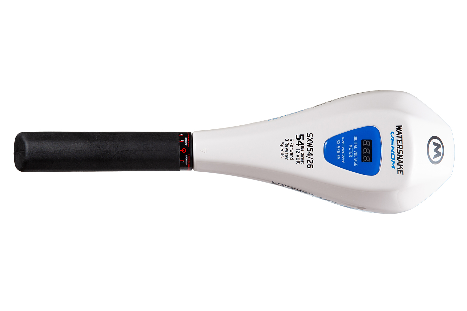 Румпель управления телескопический (13-28 см). Цифровой вольтметр на верхней панели позволяет контролировать уровень заряда батареи. Мотор имеет пять скоростей для движения вперёд и три для движения назад. Электрические провода оснащены концевыми клеммами под винт.