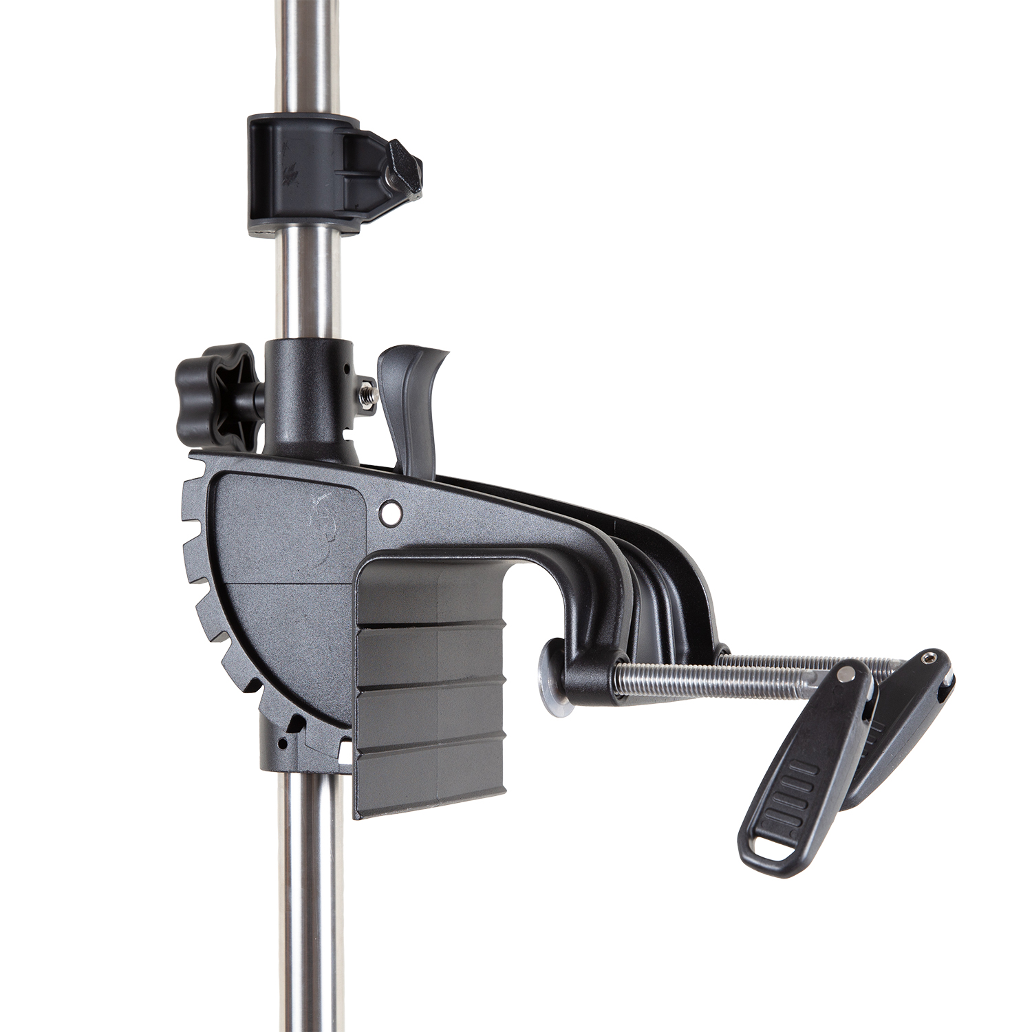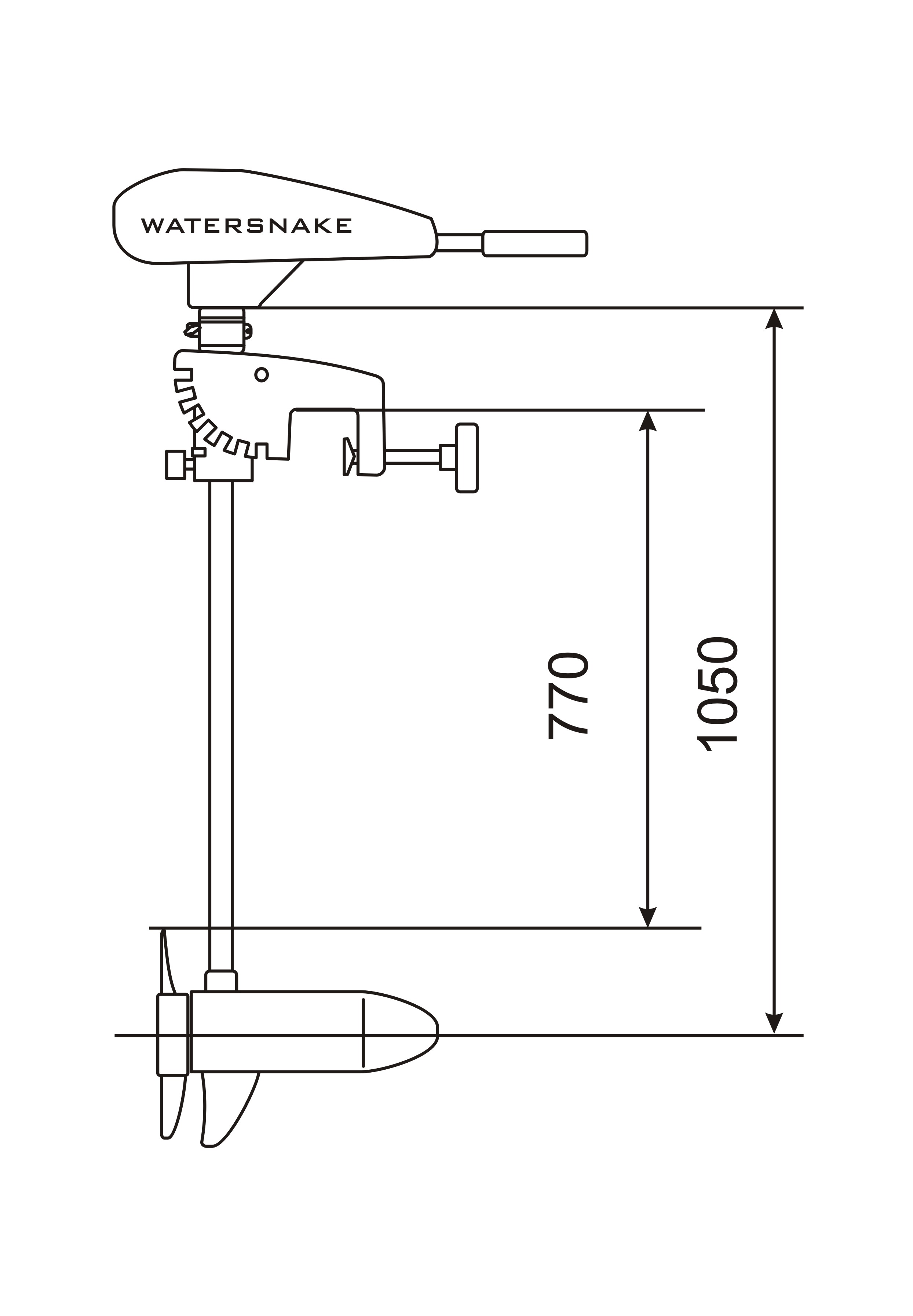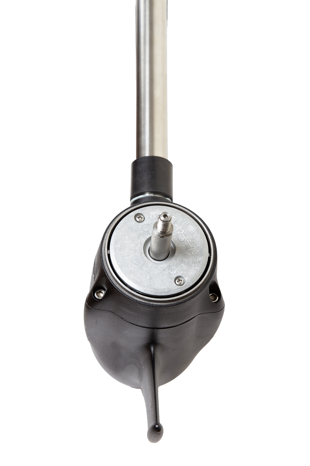 Мощный лодочный электромотор тягой 70 фунтов для надувной лодки ПВХ длиной до 5.5 метров. Оснащён струбциной для крепления на транец, конструкция которой позволяет регулировать угол наклона дейдвуда и выбрать необходимую величину заглубления винта в зависимости от высоты транца судна.