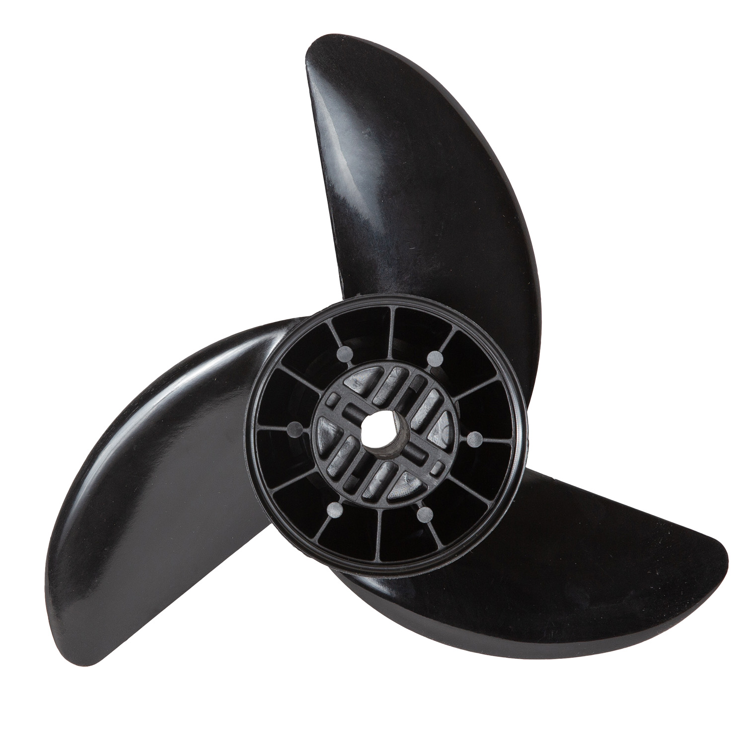 Такой гребной винт может работать в полупогруженном состоянии и позволяет эксплуатировать электрический лодочный мотор на малых глубинах. Предназначен для моторов с тягой 65 и 85 фунтов.