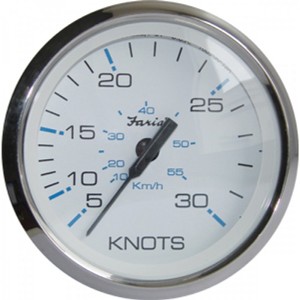 Метрический, посадочный диаметр 86 мм. Позволяет определять скорость судна относительно воды с пределах от 5 до 30 узлов (вторая шкала от 10 до 55 км/час). Напряжение питания 12-16 Вольт. Измерительный датчик (трубка Пито) в комплект прибора не входит. Прибор можно использовать со штатно установленной трубкой Пито на лодочном моторе. Цвет: белый.