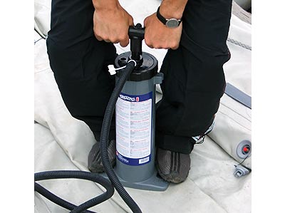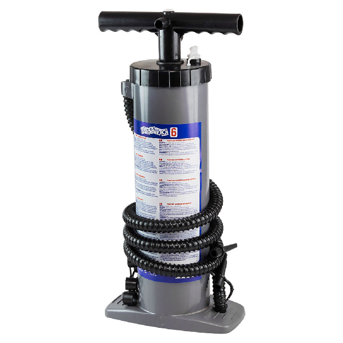 Ручной лодочный насос двойного действия объёмом 2,5 л. Насос способен развивать максимальное давление 600 мбар. Осуществляет накачивание и откачивание воздуха из баллонов.