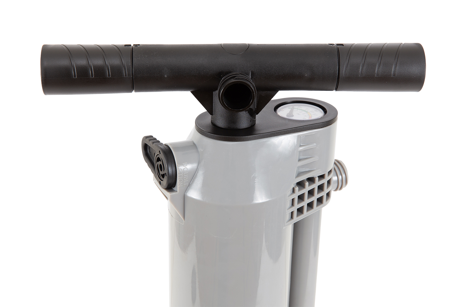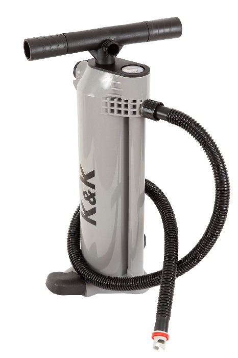 Ручной насос двойного действия BRAVO K&K, предназначенный для надувных изделий высокого давления, надувных лодок, SUP. При хранении и транспортировке можно уменьшить габаритные размеры складыванием подножки и рукояток. На корпусе имеется переключатель режимов одинарного /двойного действия для накачивания / скачивания воздуха из лодки или SUP.
