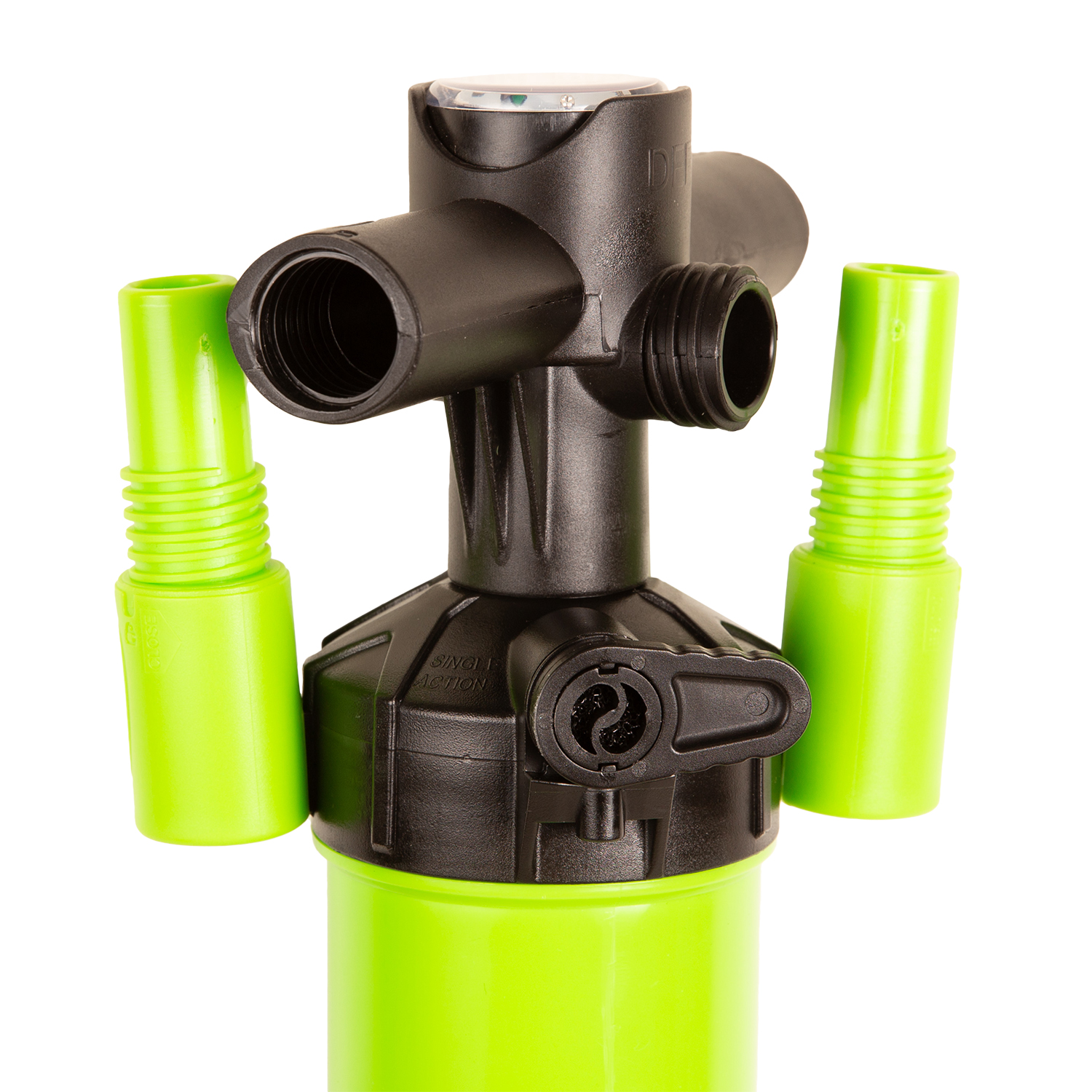 Шланг – LDPE+EVA (полиэтилен высокого давления + вспененный каучук) длина 1.25 м. Шланг оснащён переходником байонетного типа для клапанов Bravo 2005 и Bravo 2014.