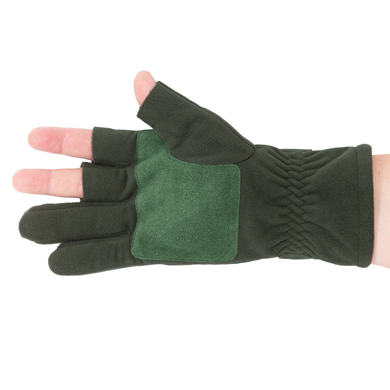 В этой новой модели, изготовленной из непродуваемого материала DuPont Hytrel, указательный и средний пальцы являются постоянно открытыми, так как именно они являются рабочими, как при подледной ловле, так и при ловле спиннингом в зимних условиях, а мизинец и безымянный пальцы - полностью закрыты. Для плотной фиксации на руке перчатки снабжены лентой на липучке в районе запястья. Наиболее эффективно использование таких перчаток в условиях ловли в холодную погоду по открытой воде (спиннинг, троллинг) или на зимней охоте или рыбалке.