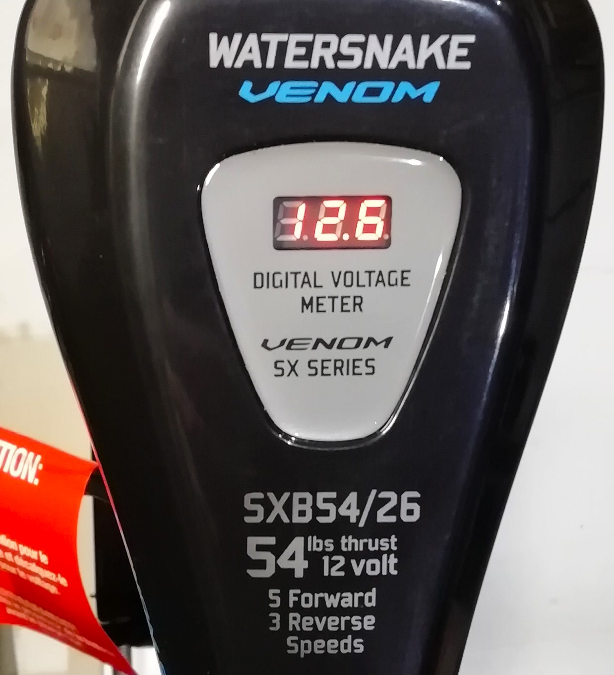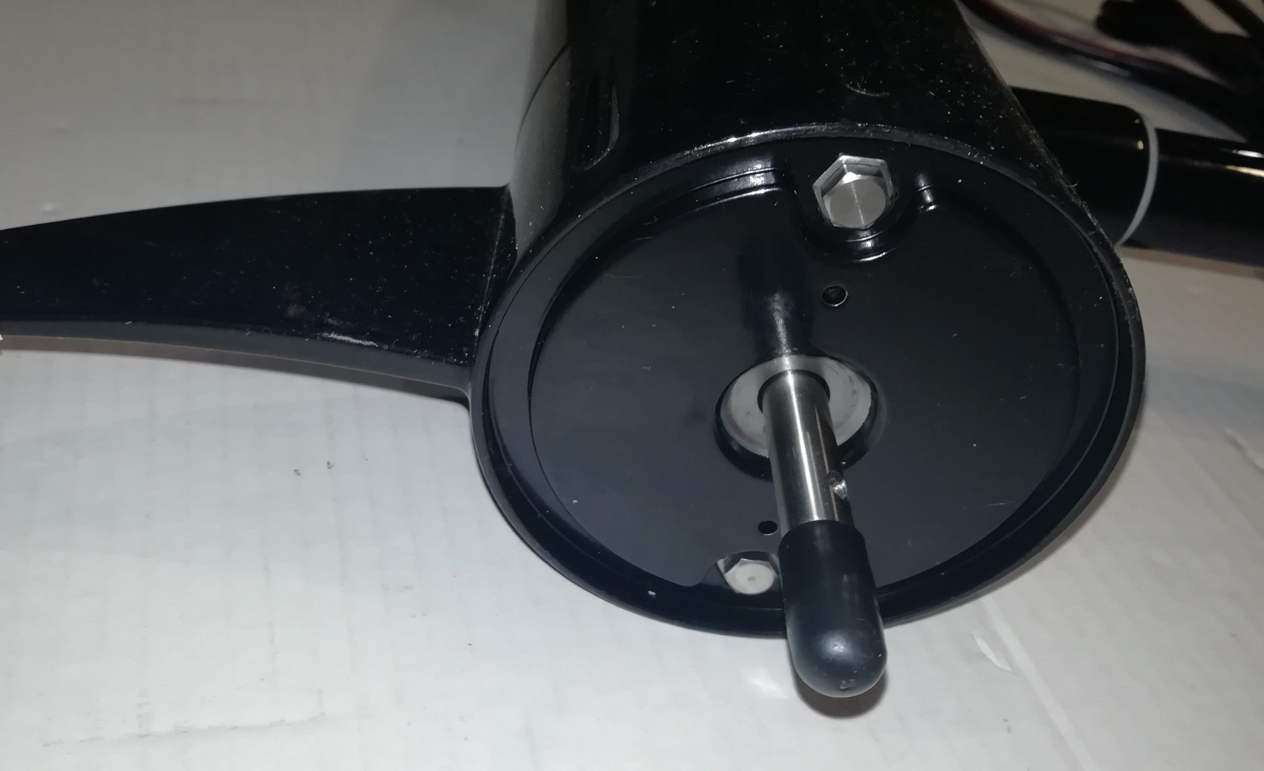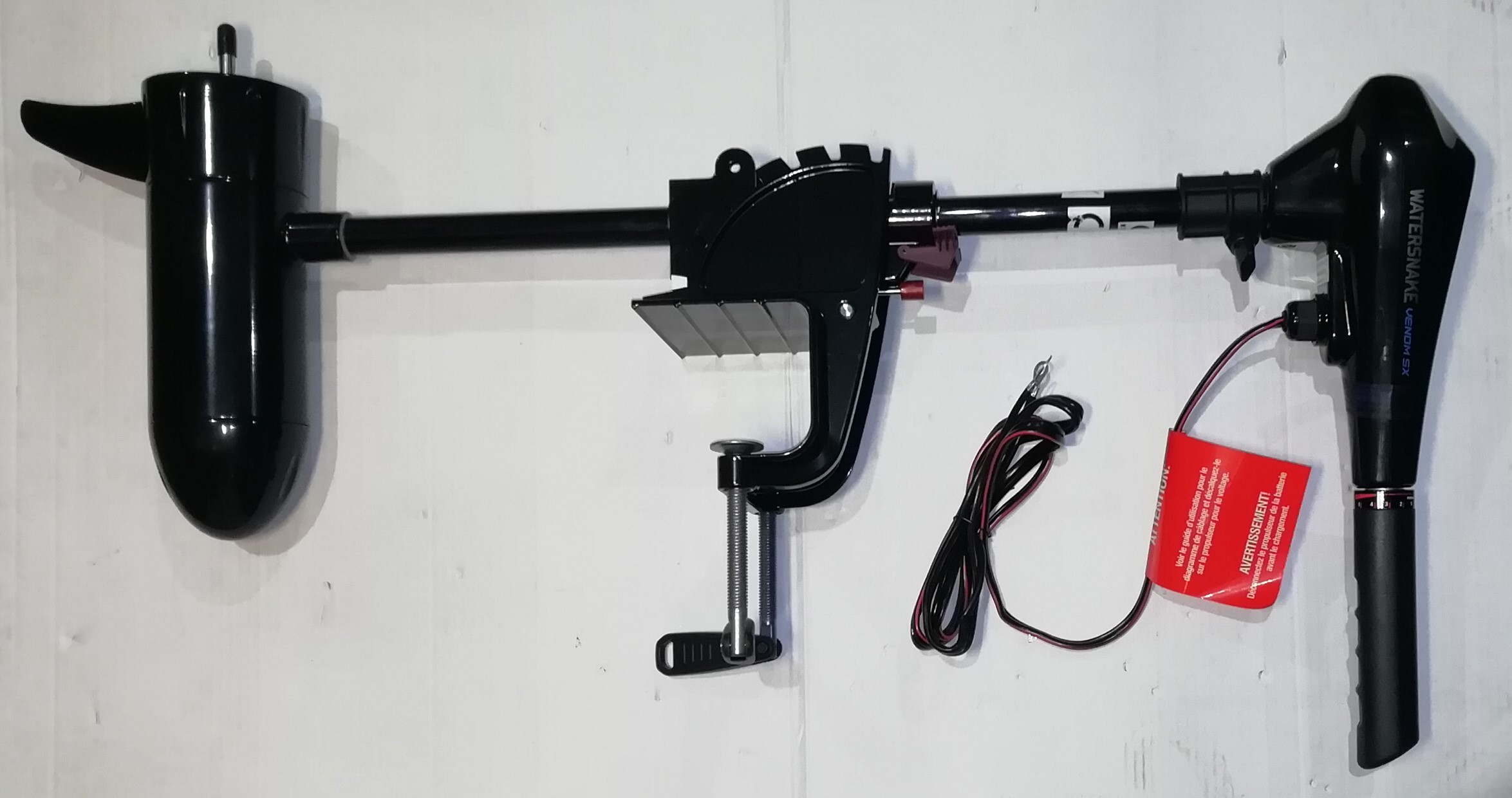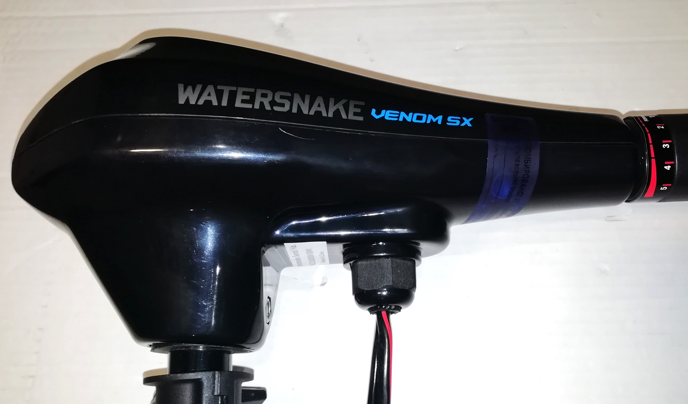 Румпель управления телескопический (13-28 см). Цифровой вольтметр на верхней панели позволяет контролировать уровень заряда батареи. Мотор имеет пять скоростей для движения вперёд и три для движения назад. Электрические провода оснащены концевыми клеммами под винт.