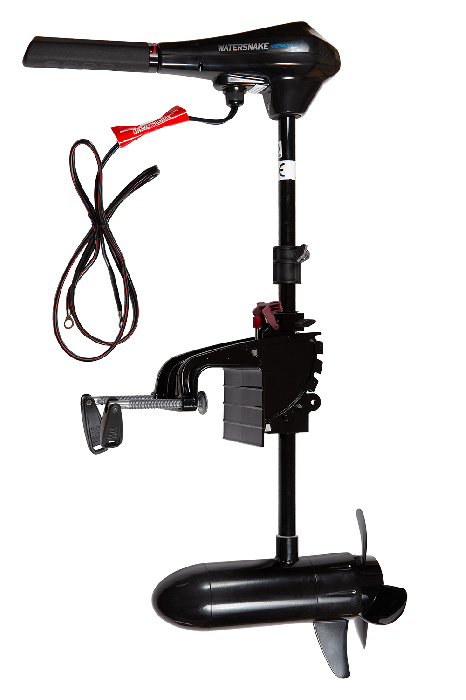 Мощный лодочный электромотор тягой 54 фунта для надувной лодки ПВХ длиной до 5.0 метров. Оснащён удобной струбциной для крепления на транец, конструкция которой позволяет регулировать угол наклона дейдвуда. Система крепления дейдвуда с фиксатором позволяет выбрать необходимую величину заглубления винта в зависимости от высоты транца судна и условий использования.