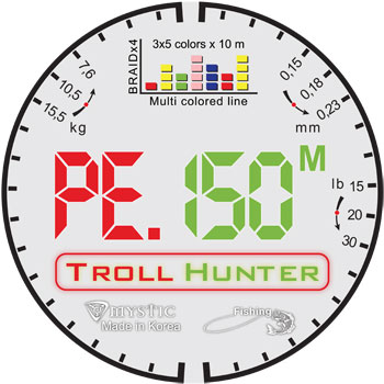 Специальная покраска по 10 м в контрастные цвета дает возможность не использовать катушки со счетчиком – Вы легко контролируете отпуск по смене цвета. Такой PE шнур очень долговечен и прочен. Прогнозируемый разрыв четко на узле – теперь Вы не потеряете половину отпущенного шнура на зацепе.