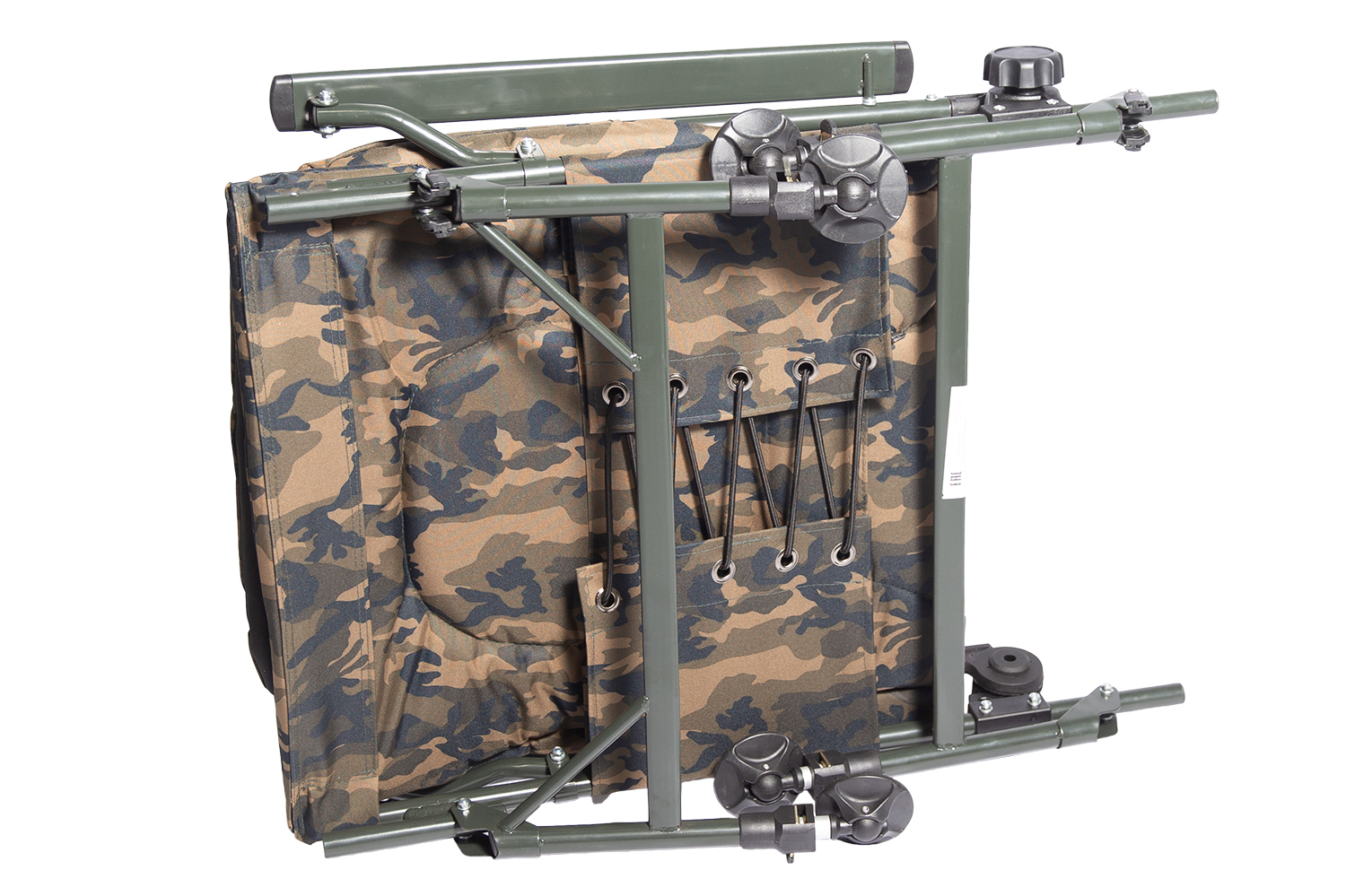 Складное кресло-кровать с регулируемой высотой ножек и наклоном спинки. Удобное кресло легко трансформировать в кровать при помощи пристаной подставки для ног. Расцвека -камуфляж. Легко установить на любой поверхности.