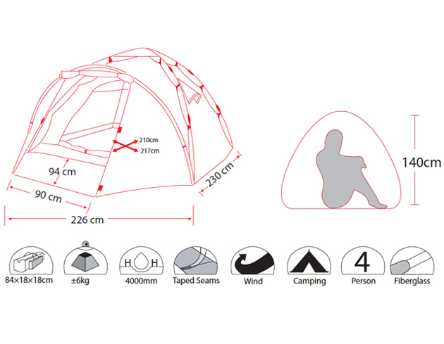 Быстросборная 4-местная палатка-автомат Lux 4 оснащена 2 отдельными входами и большим тамбуром с полом. Размеры: 240x(100+240)x140 см. Два слоя тента сверху и по бокам, а также пол в тамбуре и в самой палатке обеспечивают полную непромокаемость её обитателей.