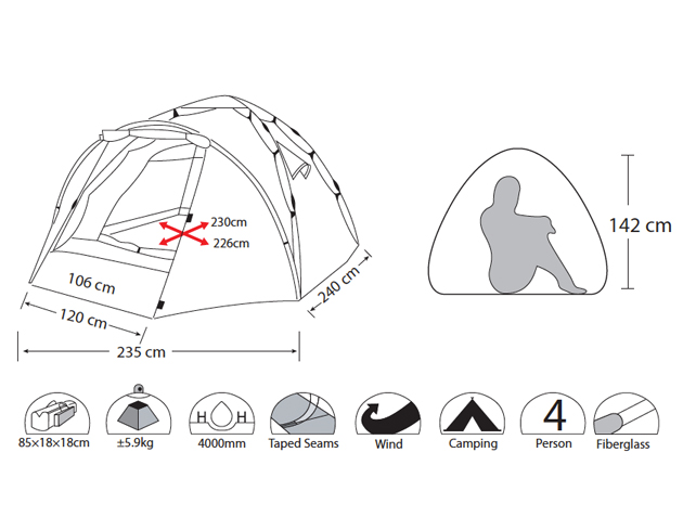 Эта палатка серии Classic имеет одно существенное отличие от других. В ней предусмотрена возможность установки каркаса с внутренней палаткой без внешнего тента. Если на улице холодно и дождливо, то установка верхнего слоя (тента) – дело 15 секунд.