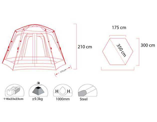 Все стороны тента полностью продуваемые, плюс на них установлена антимоскитная сетка и меются шторки, опустив которые Вы будете защищены от дождя.