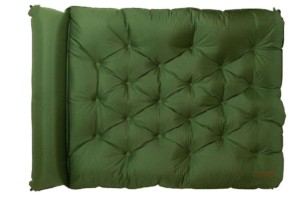 Новая модель самонадувающегося коврика, имеет не только ширину увеличенную до 140 см, но и интегрированную подушку высотой 15 см, оснащенную двумя антикоррозийными пластиковыми клапанами. Размер коврика: 195*140*(5+15) см. Вес – 4 кг. Вне палатки коврик переносится в сумке 73*23*23 см.
