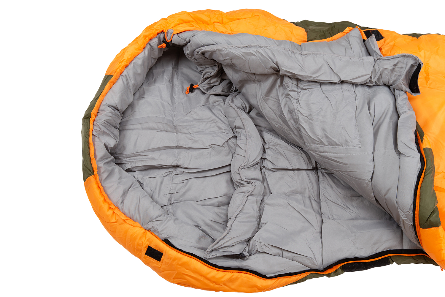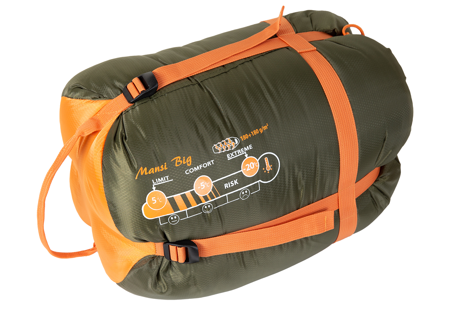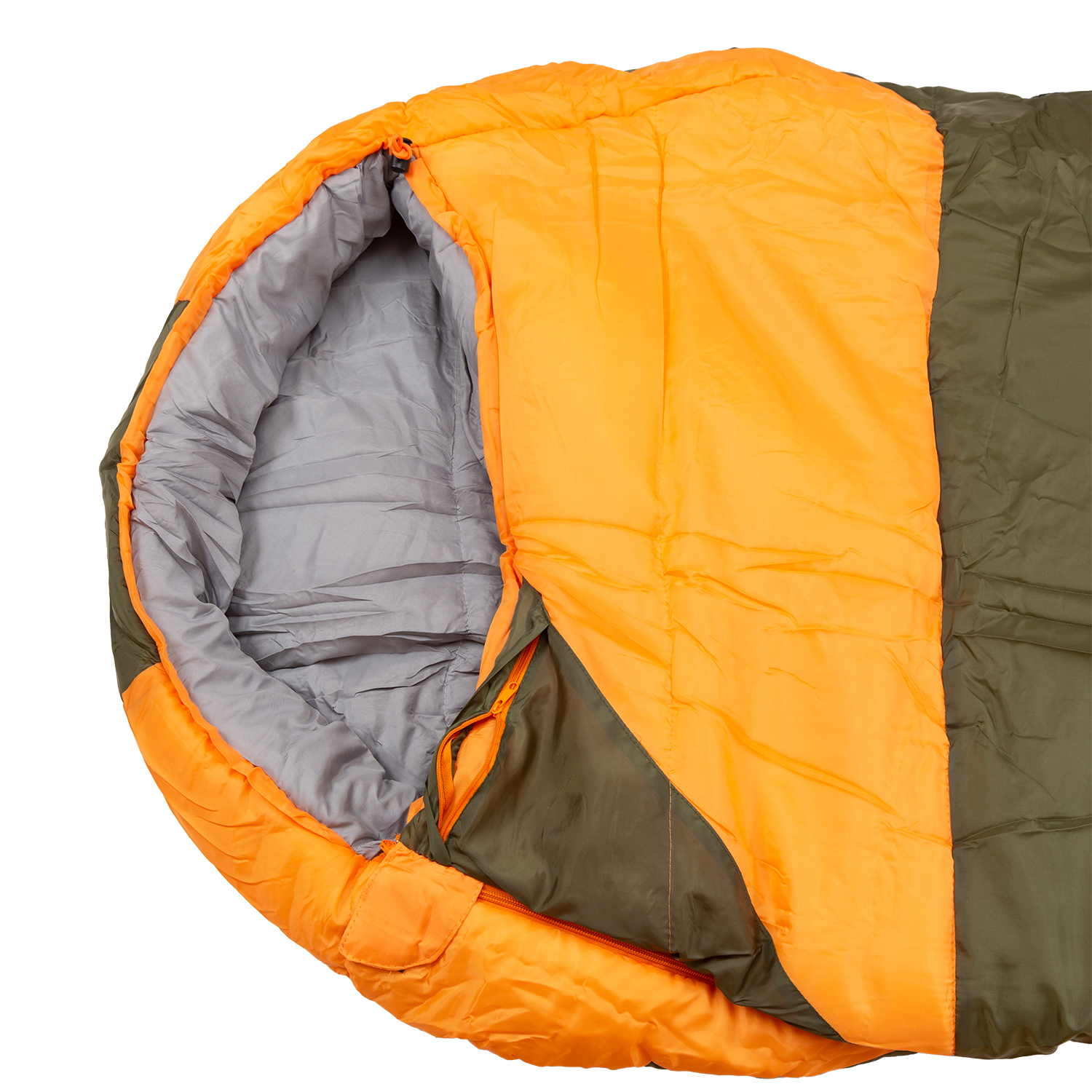 Толстый и тёплый классический спальник в форме кокона. Имеет удобный нагрудный карман, мощный слой утеплителя и увеличенный размер, адаптированный для высоких людей.