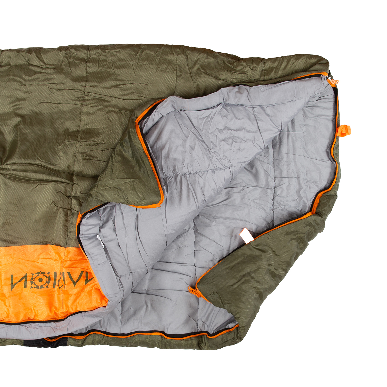 Тёплый спальник, который можно состыковать с помощью молний, превратив модели с индексами L и R в двухместный спальный мешок, либо, открыв молнию, использовать в качестве обычного одеяла. При пристёгивании второго спальника молния располагается справа.