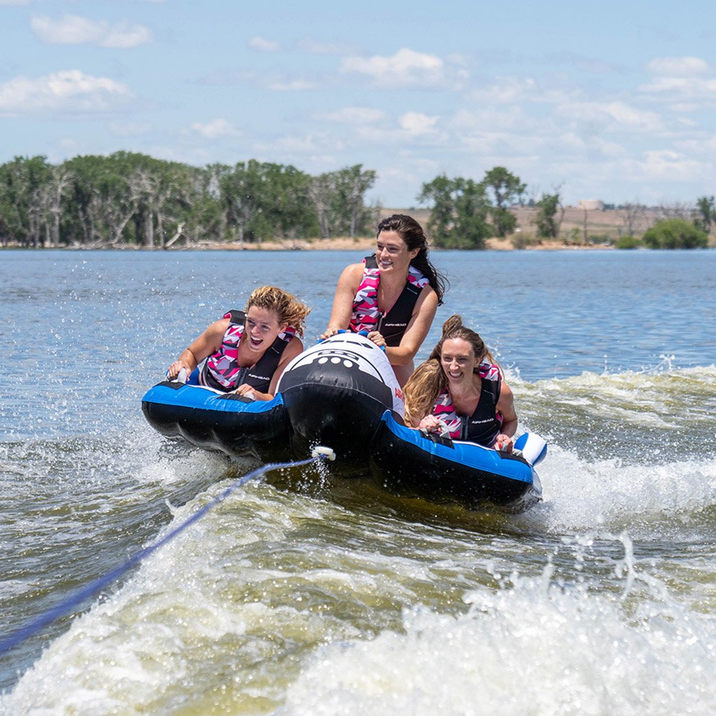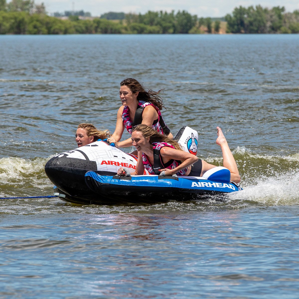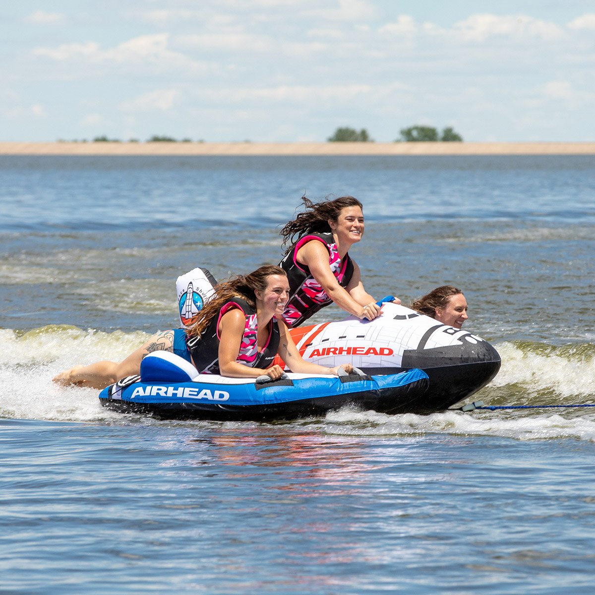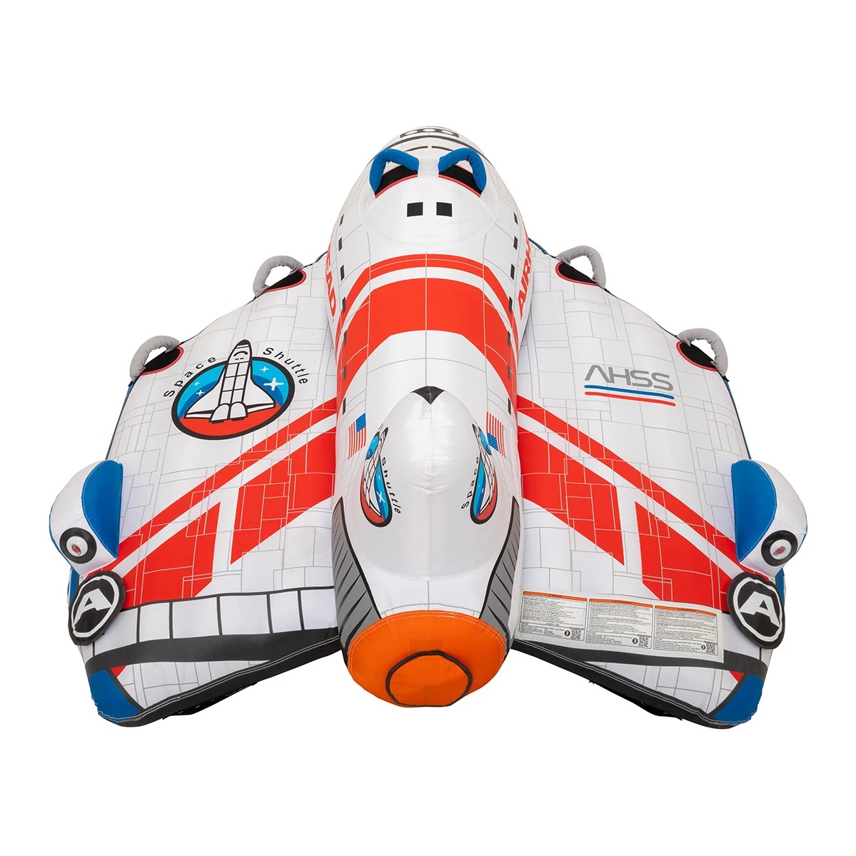 Новый Спейс шаттл обязательно заставит всех повернуть головы, когда вы пролетаете мимо других отдыхающих на воде. Благодаря уникальному дизайну, особым функциям и 1-3 вариантам наездников, это самое лучшее буксируемое дополнение к вашему арсеналу для катания на лодках. Спейс шаттл имеет как полностью закрытую, с двойным швом нейлоновую крышку, так и запатентованный воздушный клапан, чтобы обеспечить годы безопасной езды по воде. Специально разработанные плавники баллона помогают держать всадников во время диких поездок, а сцепка Kwik-Connect делает крепление к фалу очень легким.
