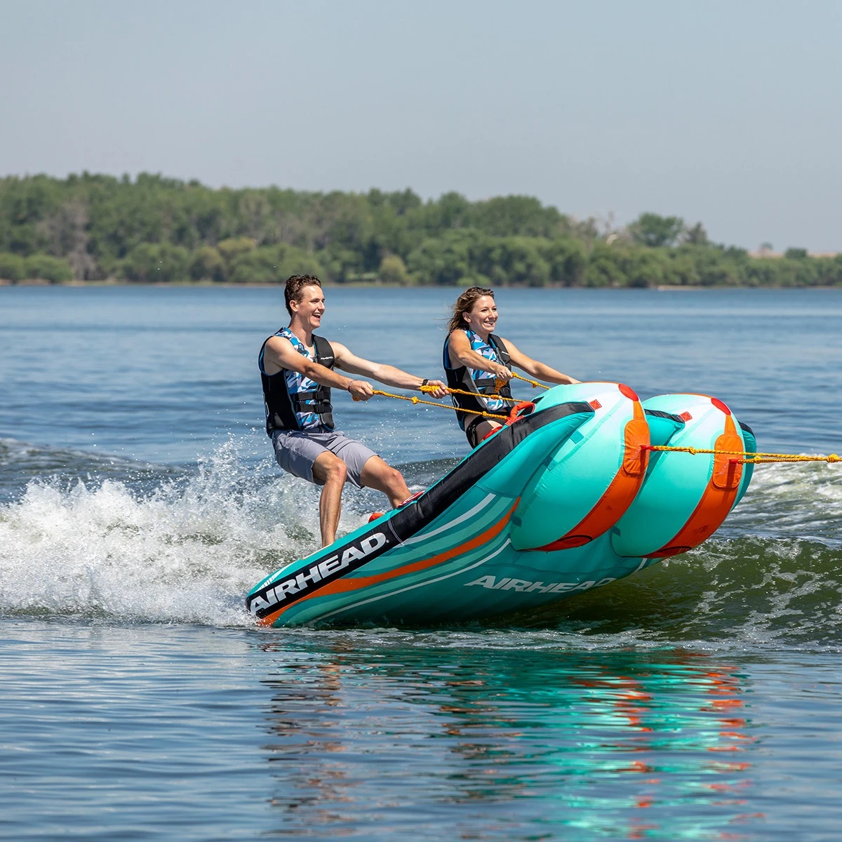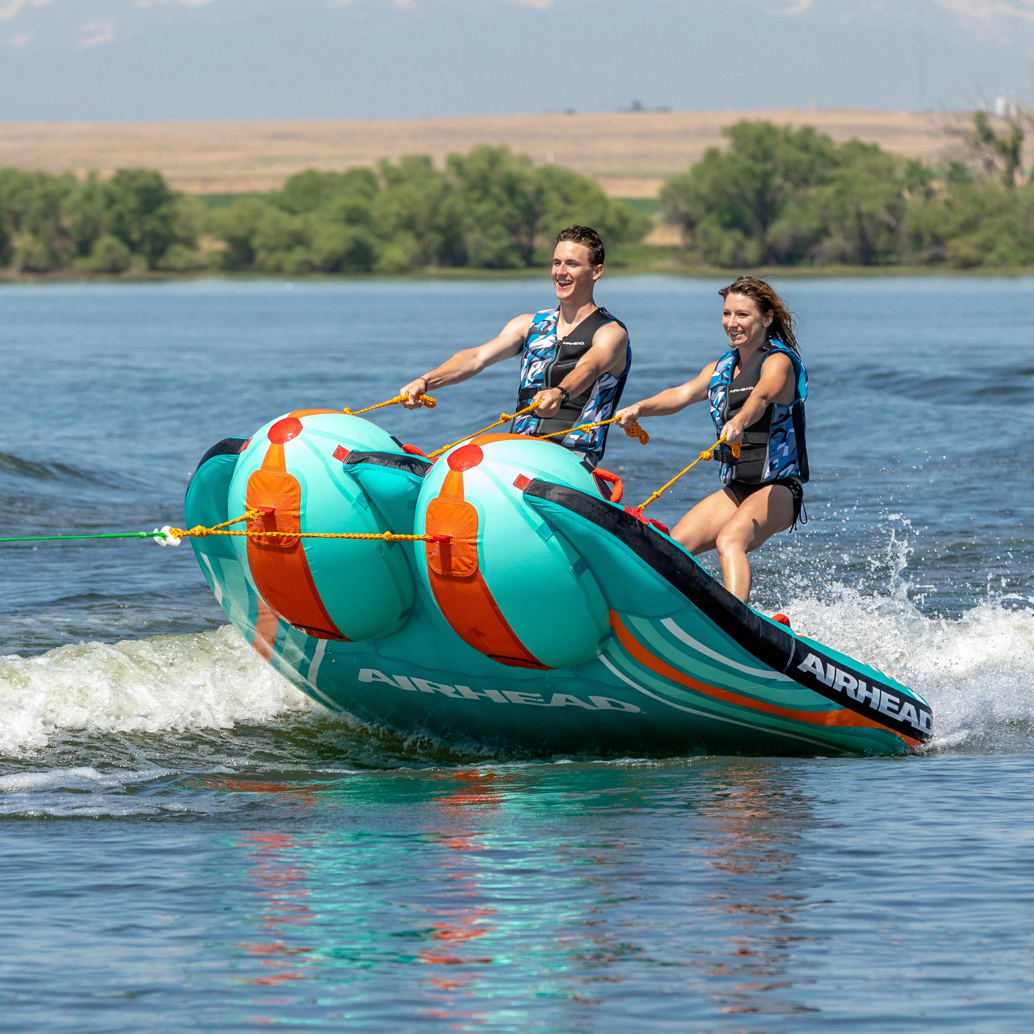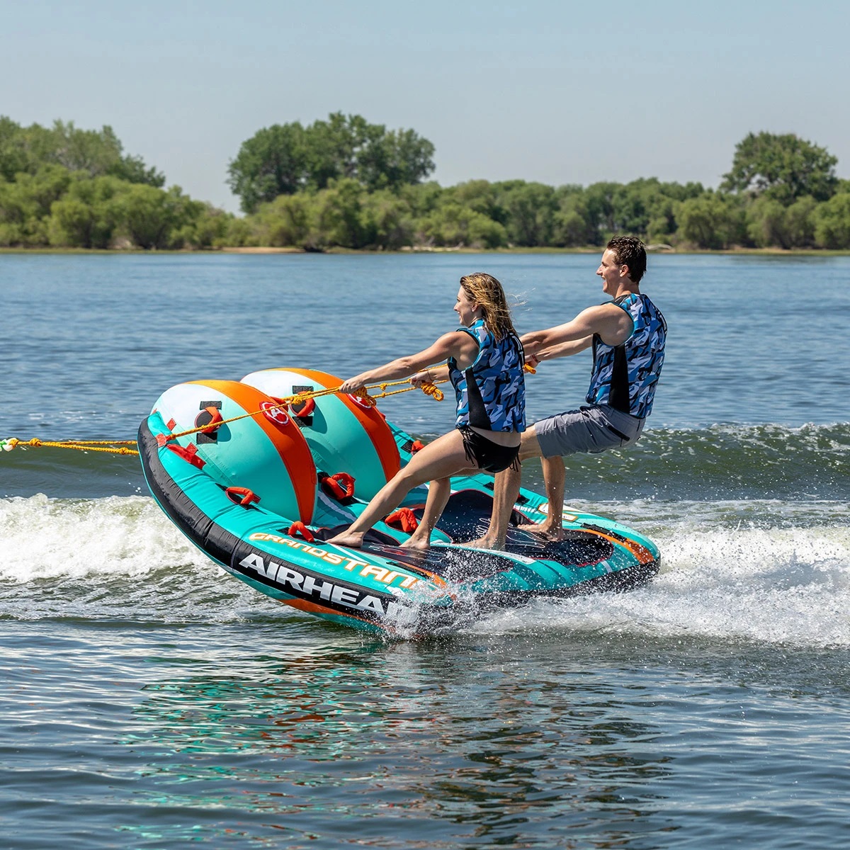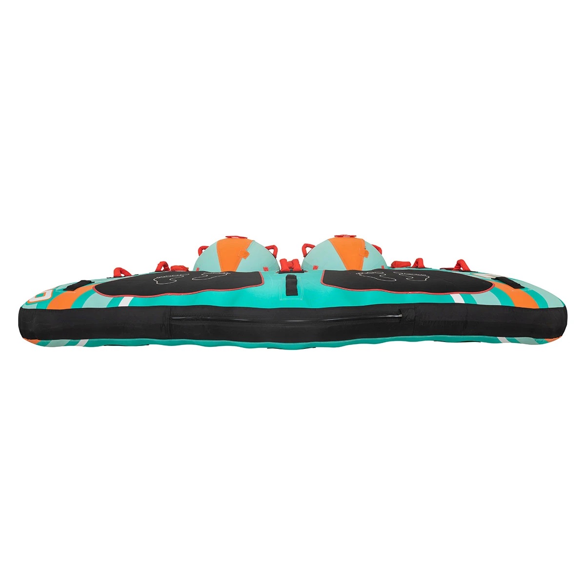 Устал сидеть? Встаньте и кричите вместе с новым GRANDSTAND 2! Этот единственный в своем роде буксируемый аттракцион для двух гонщиков имеет оригинальную конструкцию носовой части для легкой буксировки, и позволяет использовать несколько позиций для покатушек, включая возможность встать, как лыжник! Двойные поводки для рулевого управления и множество эксклюзивных ручек вселяют уверенность в том, что вы можете держаться в любом положении, находясь на воде, а яркая графика палубы дает знать, что вы идете! Встаньте вместе с новыми Granstand 2 от AIRHEAD! Размер в сдутом состоянии 264х224 см.