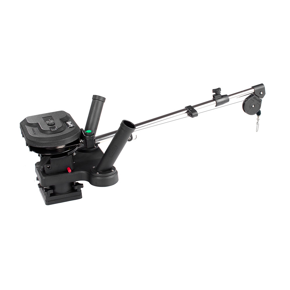Даунриггер оснащен прочной телескопической стрелой диаметром 32 мм с изменяемой длинной от 90 до 150 см, выполненной из стали, Все конструктивные элементы этой модели рассчитаны на большую нагрузку. Может использоваться в пресной и соленой воде
